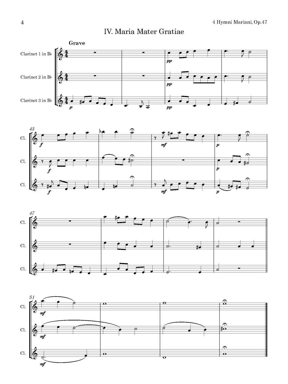 Enrich your clarinet ensemble's repertoire with this versatile arrangement, embracing the power of sacred hymns in a new and captivating form. Elevate your performances with the timeless beauty of "4 Hymni Mariani, Op.47".