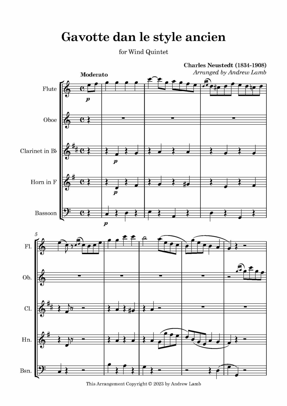 Charles Neustedt | Gavotte dans le style ancient (for Wind Quintet)
