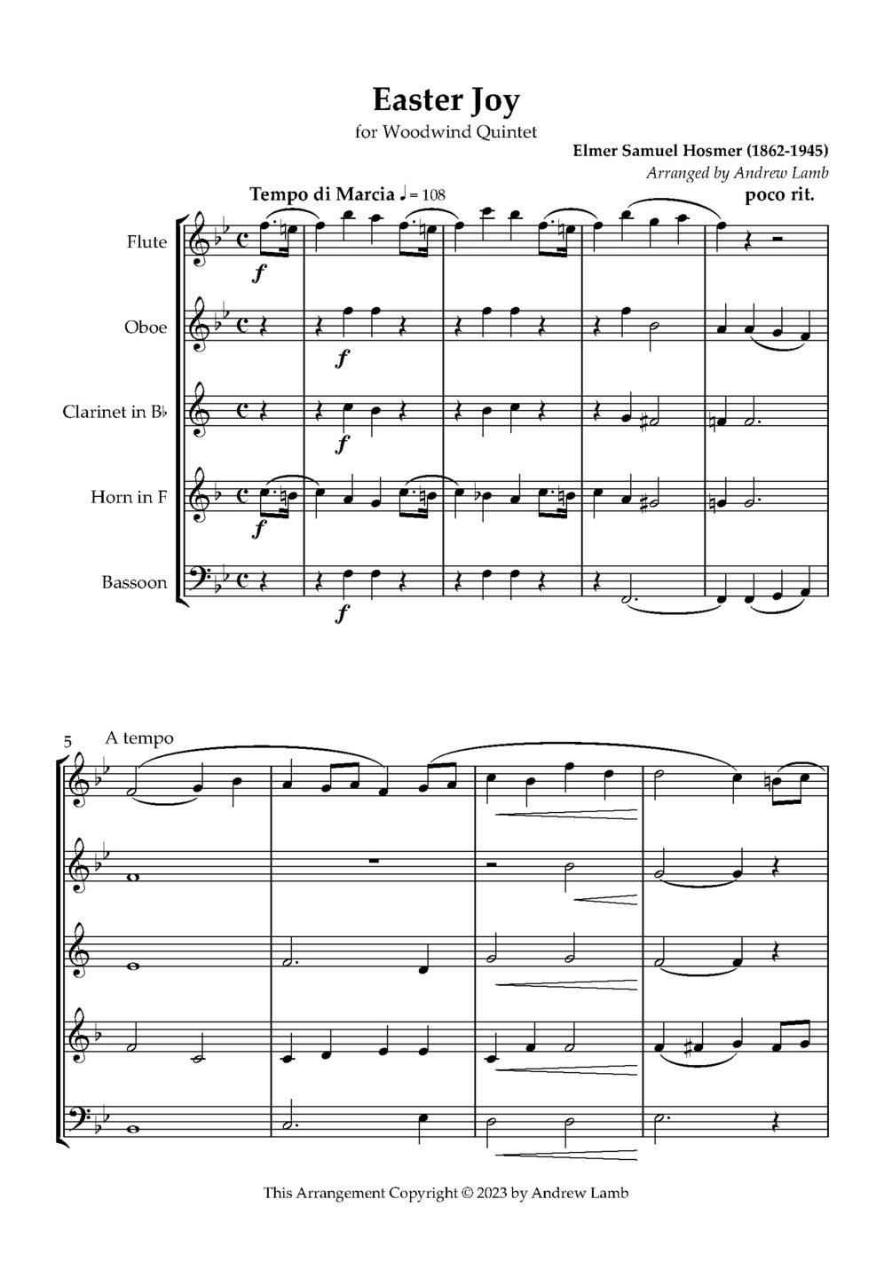 Elmer Hosmer | Easter Joy (arr. for Wind Quintet)
