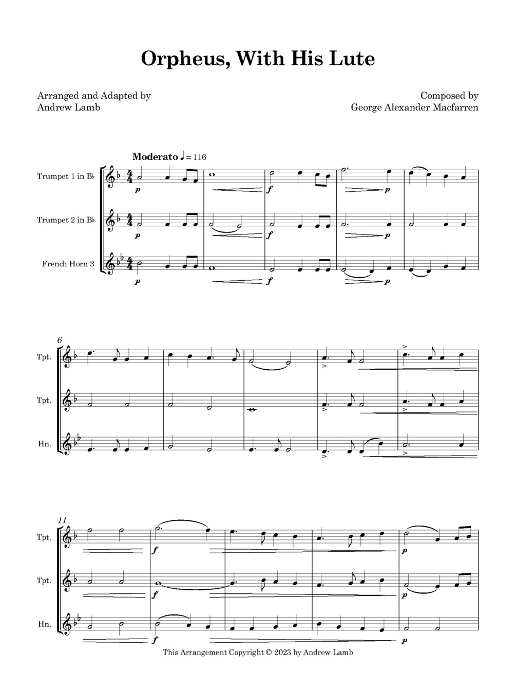 πΊ Immerse yourself in the enchanting world of George Alexander Macfarren's 'Orpheus, With His Lute' with this captivating Brass Trio adaptation by Andrew Lamb! πΆπ