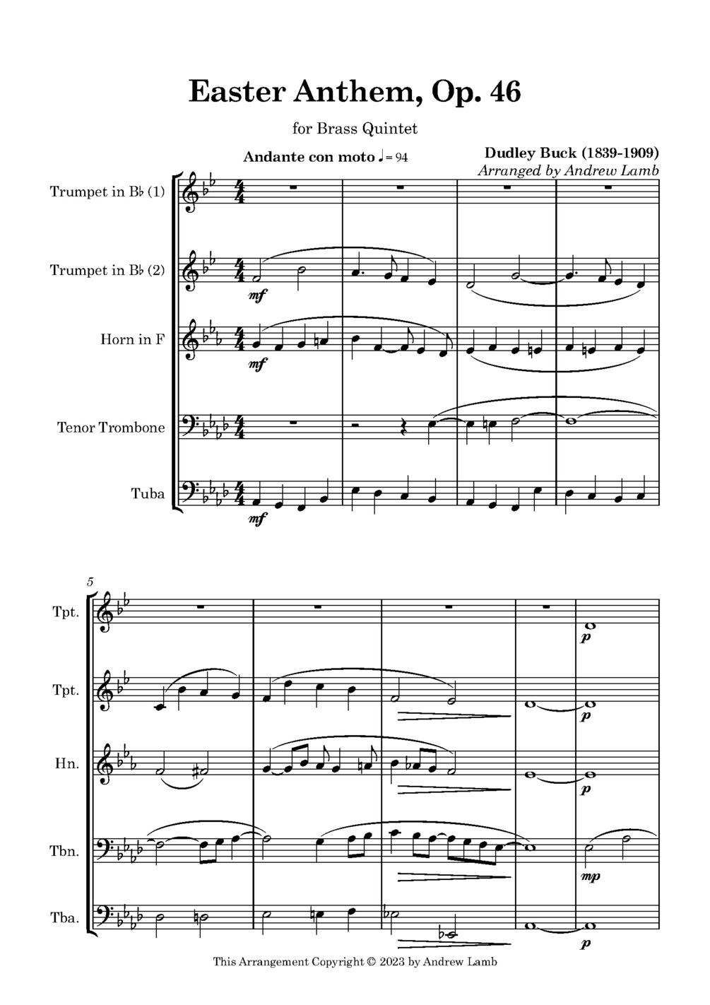 Dudley Buck | Easter Anthem, Op. 46 (for Brass Quintet)